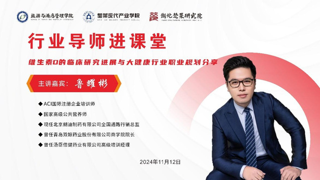 (供稿人:张芸;审稿人:蒋昕)2024年11月12日上午,公司2012届烹饪与营养教育专业毕业生鲁耀彬,应邀返校为烹饪与营养教育专业21级和23级全体同学展开以《维生素D的临床研究进展与大健康行业职业规划分享》为主题的报告。