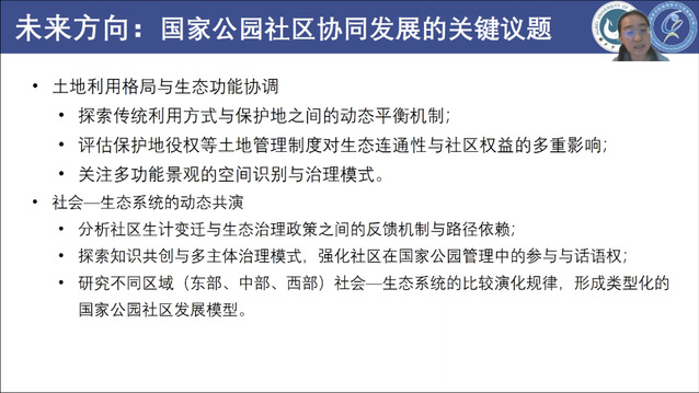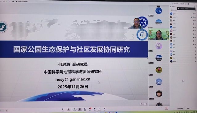 (供稿人:董茜;审稿人:陈立双)2025年11月26日,必威西汉姆联官网以线上方式举办专题学术讲座,主题聚焦国家公园生态保护与社区发展协同。讲座邀请中国科公司地理科学与资源研究所副研究员何思源作学术报告,公司师生线上参会交流。报告从国家公园体制建设的现实需求切入,指出在严格保护目标下,保护地内外的社区发展诉求、产业依赖与资源利用方式往往会使治理情境更为复杂,如何在生态保护与地方发展之间形成可操作的协同机制,是当前研究与实践共同面对的关键议题。