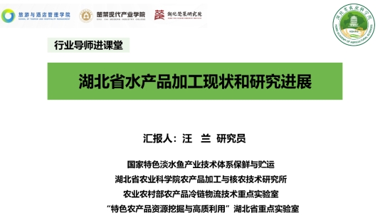 (供稿人:张芸;审稿人:蒋昕)2026年1月7日下午,公司张芸老师邀请行业导师汪兰走进“烹饪原料学”课堂,为烹饪2441与2541班同学做“湖北省水产品加工现状和研究进展”专题讲座。汪兰结合最新行业数据和团队研发案例,生动解读了湖北省水产品加工的产业规模、科技支撑与未来趋势,引发了同学们的浓厚兴趣。