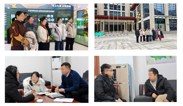 2月4日下午,师生团队参观了神农架国家公园自然生态馆,通过地质遗迹、高山湿地、生态系统与生物资源等展陈板块,对神农架独特的自然资源与生态价值建立了系统性认知。随后,团队前往神农架国家公园管理局,与保护与综合利用科唐绁科长、社区事务工作科梅拥军科长等一线管理人员开展座谈交流。双方就国家公园管理体制创新、保护条例落地实施、社区共建与生态保护协同发展等议题进行了深入研讨,重点探讨了生态移民政策实施成效、生态友好型中药材种植、旅游产业与国家公园管控之间的协调发展路径,为研究生理解国家公园“保护优先、绿色发展”理念提供了鲜活案例。